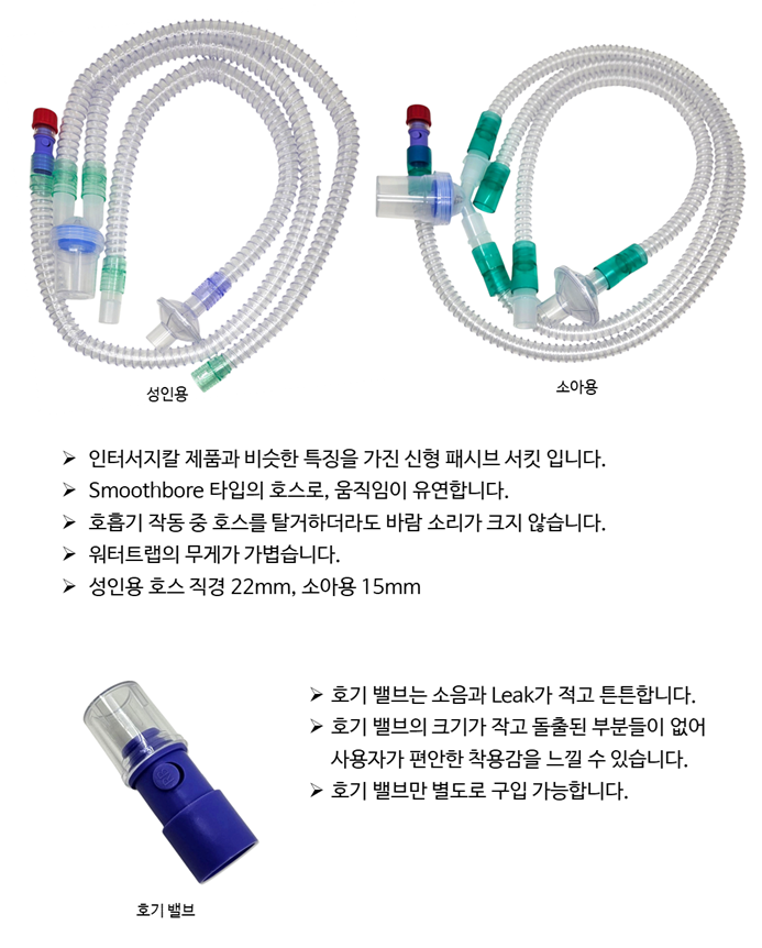 인공호흡기용 제품 고객과 함께 성장하며, 혁신을 이끄는 기업! (주)타이보메드 Passive Breathing Circuit (성인용 / 소아용) 이전글 Whisper Swivel Connector (리크밸브) 다음글 Passive Circuit (성인용) 리스트