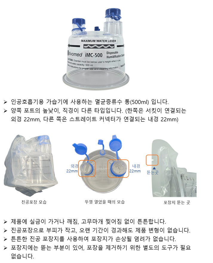 인공호흡기용 제품 고객과 함께 성장하며, 혁신을 이끄는 기업! (주)타이보메드 Disposable Humidification Chamber 이전글 Active Circuit (성인용 / 소아용) 다음글 Auto Feed Humidifier Chamber 300ml 리스트